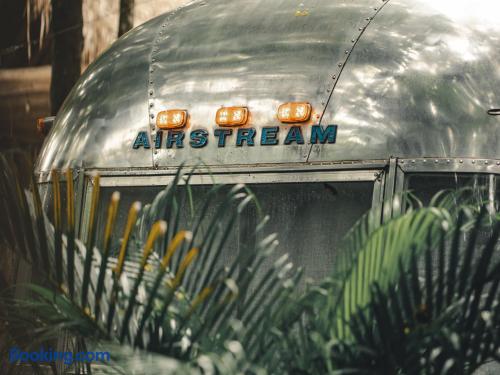 Experience the unique charm of our 1973 Airstream Sovereign, one of two vintage Airstreams on a lush, shared property in North Guiones, Nosara. Airstream by the Sea lets you enjoy minimal, laid-back luxury just a 5-minute walk from the beach, restaurants, and shops. @AirstreamByTheSea Book this cozy retreat or view both listings for larger groups: www.airbnb.com/users/4733003/listings