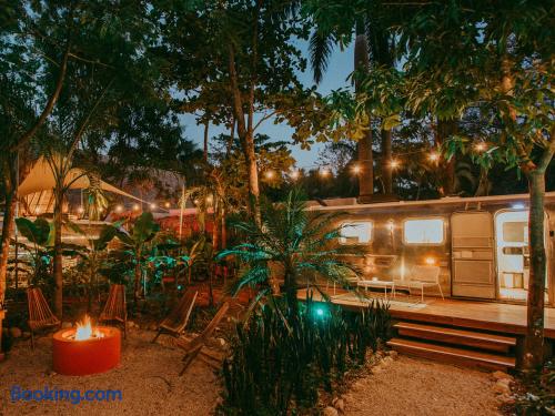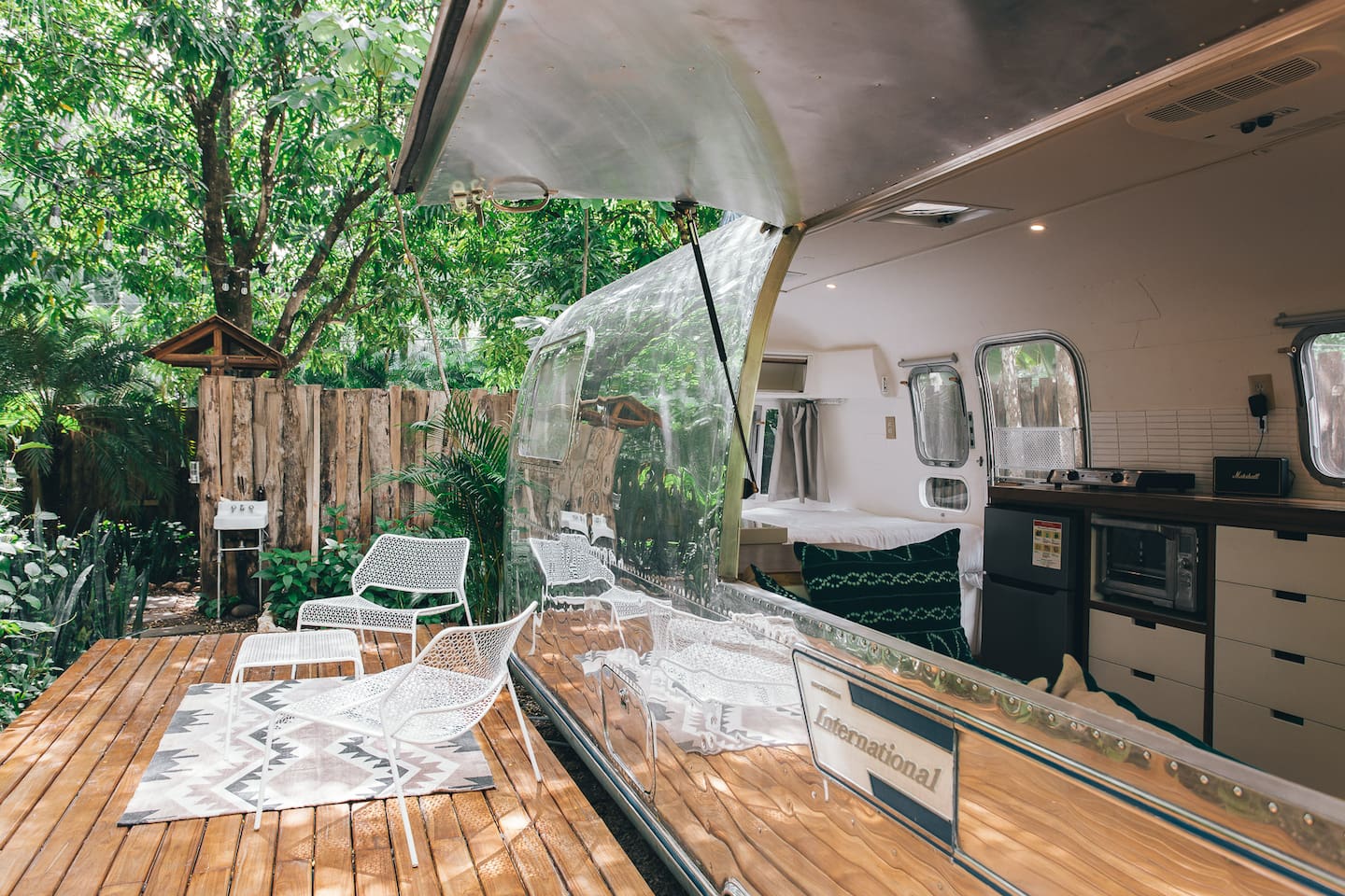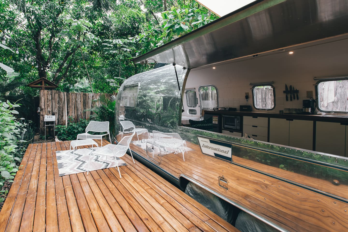 Stay in a beautifully restored 1978 Airstream Ambassador, one of two vintage Airstreams on a lush, shared property in North Guiones, Nosara. Airstream by the Sea lets you enjoy minimal, laid-back luxury just a 5-minute walk from the beach, restaurants, and shops. @AirstreamByTheSea Book this cozy retreat or view both listings for larger groups: www.airbnb.com/users/4733003/listings